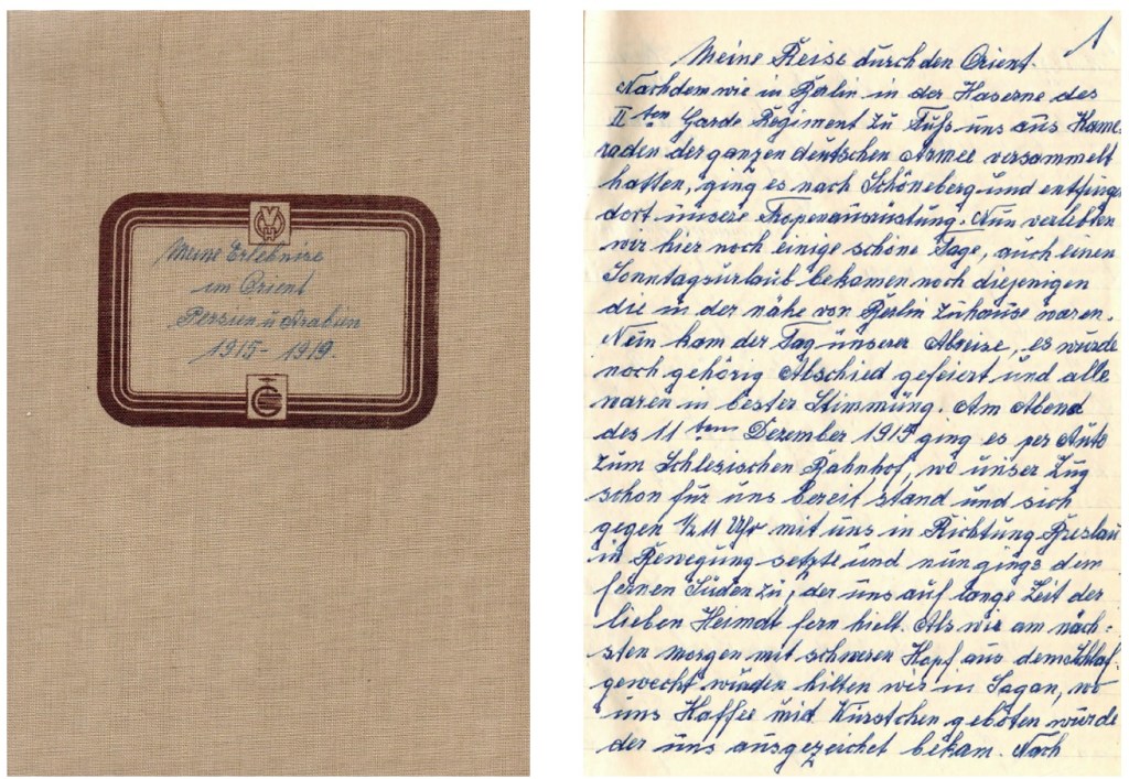 At the beginning of the war in 1914, Otto was drafted into the German army, where he served as a Wachtmeister in the cavalry (equivalent to a Feldwebel ‘sergeant’ in the infantry). He was initially deployed in France but then volunteered for service in the “Orient” – and was accepted. Together with a group of thirty, he left Berlin on December 11, 1915, then twenty-eight years old. [This is where the memoirs start.]